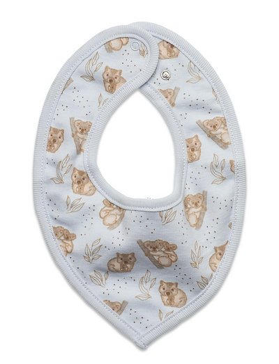 Bib made of organic cotton rib. The bib has all-over-print and soft rib. It has a triangular shape on the front and closes with snap on the neck.