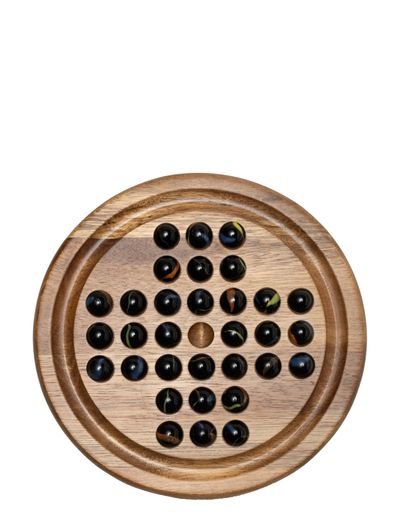Nice wooden solitaire game, from Gentlemen's Hardware! 32 glass marbles Acacia wood game board drawstring pouch