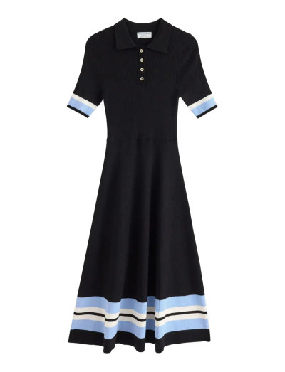 Gestreifte Details an den Ärmeln und am Saum.