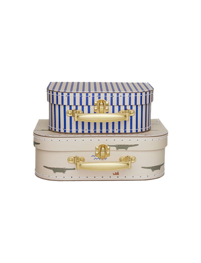 The classic suitcase is a musthave in any child's room. It invites to hours of play; travel around the world, pack your suitcase with small secreats, or maybe it´s filled with your most cuddly friends. Comes in a set of two suitcases in two different sizes.