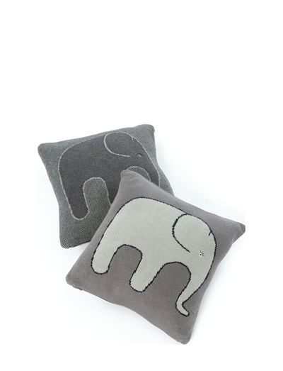 Cushion, knitted elephant, soft grey