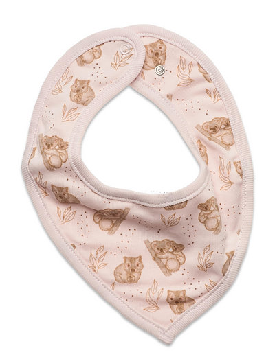 Bib made of organic cotton rib. The bib has all-over-print and soft rib. It has a triangular shape on the front and closes with snap on the neck.