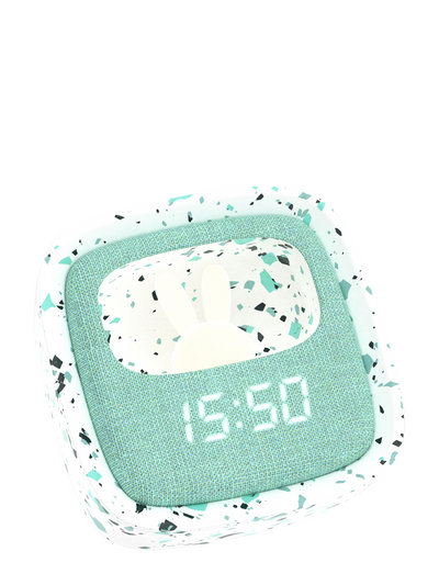 LIMITED EDITION / Terrazzo Design- Perfect marriage between an alarm clock and a night light, Billy clock is the perfect partner to decorate and illuminate a child room. The front is made of soft fabric and the frame of silicone « soft-touch » for a smooth design. Buttons on the back will allow you to set the features: time, date and alarms. Brightness can be adjusted thanks to the touch button on the alarm clock. The Billy clock and its little silicone rabbit night light will watch over little ones for a quiet night.