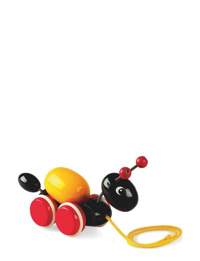 Traditionell dragleksak i tidlös BRIO design! När barnet drar myran efter sig, tumlar ägget runt på dess rygg. Från 12 månader.