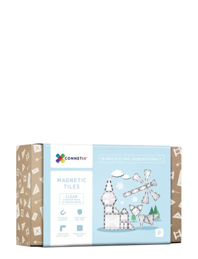 Træd ind i en verden af uendelige muligheder med Connetix Starter Pack - magnetsæt 34 dele - clear. Dette sæt indeholder gennemsigtige, magnetiske brikker i forskellige former inklusive store sekskanter. Slip din kreativitet løs og byg Frozen-slotte, snefnug, igloer, vinduer eller drivhuse. Børn kan udforske magnetisme, former, lys og tyngdekraft, mens de udvikler finmotoriske og problemløsningsfærdigheder.
