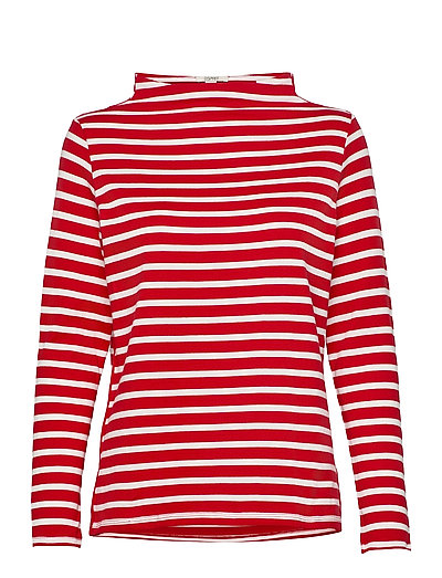 Striped long sleeve top with a band collar - Langærmede toppe