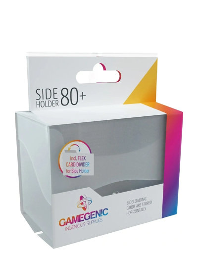 The Side Holder 80+ is a casual sideloading deck box to safely protect up to 80 double-sleeved cards. Its self-locking flap closure can be opened by up to 180° thanks to the use of the innovative Cobra Neck technology on the back.