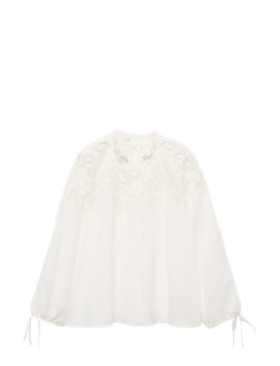 Embroidered blouse with bows - Langærmede
