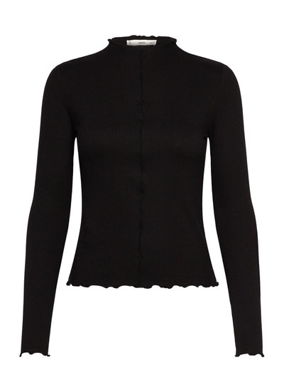 Ribbed t-shirt with scalloped trim - Langærmede toppe