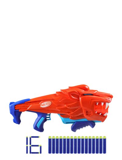 Nerf Junior Wild-blastere er designet med særlige funktioner, så de er nemme at lege med, så børn på egen hånd kan lege med disse blastere med et vildt udseende. De er nemme at holde, lavet til at passe i små hænder og lette, så de nemt kan bæres under udendørs leg. Designet med frontladning gør det nemt at indsætte darts, og håndtagene kræver mindre styrke end nogen anden Nerf-dartblaster, så det er nemt at affyre dartsene. Ved hjælp af alle disse funktioner kan børn opleve spændende affyring på egen hånd. Det er et perfekt legetøj til børn, der prøver Nerf-dartleg for første gang. Nerf Junior Lionfury-blasteren har et flot løvedesign, der afspejler dette vilde kattedyr med levende farver og spændende detaljer! Denne Nerf-løveblaster inkluderer 16 fleksible Nerf Elite 2.0-skumdarts. Der anbefales en form for briller (medfølger ikke). Blastere sælges separat. Der tages forbehold for udsolgte varer. Nerf og alle relaterede betegnelser er varemærker, der tilhører Hasbro.