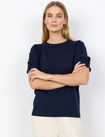 Har puffede korte ærmer med elastiske manchetter