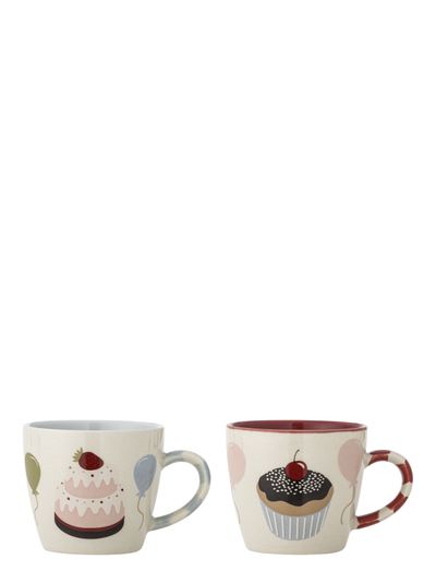 Darby Cup by Bloomingville MINI on 2-st kivitoorainest tassist koosnev komplekt. Tassid on kaunistatud kõige pidulikumate kookide ja õhupallidega ning käepidemetel on peened sinise ja punase tooni triibud. Tassid on väikeste käte jaoks ideaalse suurusega ja neid saab kasutada nii kuumade kui ka külmade jookide serveerimiseks.