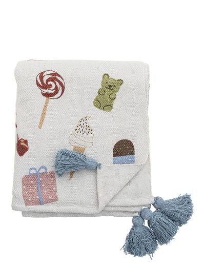 See pehme ja hubane viskamate on ideaalne diivanil või voodis mõnusaks aega veetmiseks. Sellel on lõbus ja mänguline disain, millel on mitmesuguseid magusaid maiustusi, sealhulgas pulgakommid, jäätis ja kummimaod. Tekk on valmistatud pehmest ja mugavast materjalist, mis sobib ideaalselt imikutele ja lastele. See on ka masinpestav lihtsaks hoolduseks.