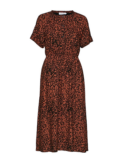 LEOPARD 3/4 SLV WAIST DRESS - Midikleidid