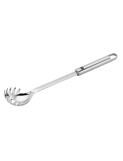 zwilling pro-seeria spagetilusikas ei sära mitte ainult tänu kõrgelt poleeritud roostevabast terasest, millest see on valmistatud, vaid ka tänu detailirohkele töötlusele. käepide on matt ja ümardatud, et see istuks mugavalt käes. käepidemesse integreeritud aas võimaldab seda elegantset kööginõu pärast kasutamist dekoratiivselt köögirauda riputada. lusikas on eriti suur ja võimaldab hõlpsasti tõsta spagette või nuudleid keeva vee alt välja. spagetilusikas on loomulikult ka serveerimisel uskumatult abiks. laiad näpud tagavad, et pasta on kindlalt haaratud ja ei lange maha. eriti kasulik on lusika sisse ehitatud spagetimõõtja, mis võimaldab pastat enne keetmist doseerida. te ei tee enam kunagi liiga palju. käepidemel olev dekoratiivne laserjoon on elegantne detail, mis eristab kogu pro-seeriat. kõik kööginõu osad on loodud rahvusvaheliselt tuntud disainerite matteo thun ja antonio rodriguez poolt ning neil on eriline, minimalistlik välimus, mis täiendab teie köögisisustust veel aastaid maitsekalt.