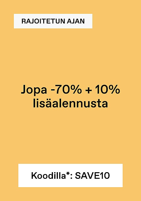 ⏰ Jopa -70% + 10% lisäalennusta ⏰