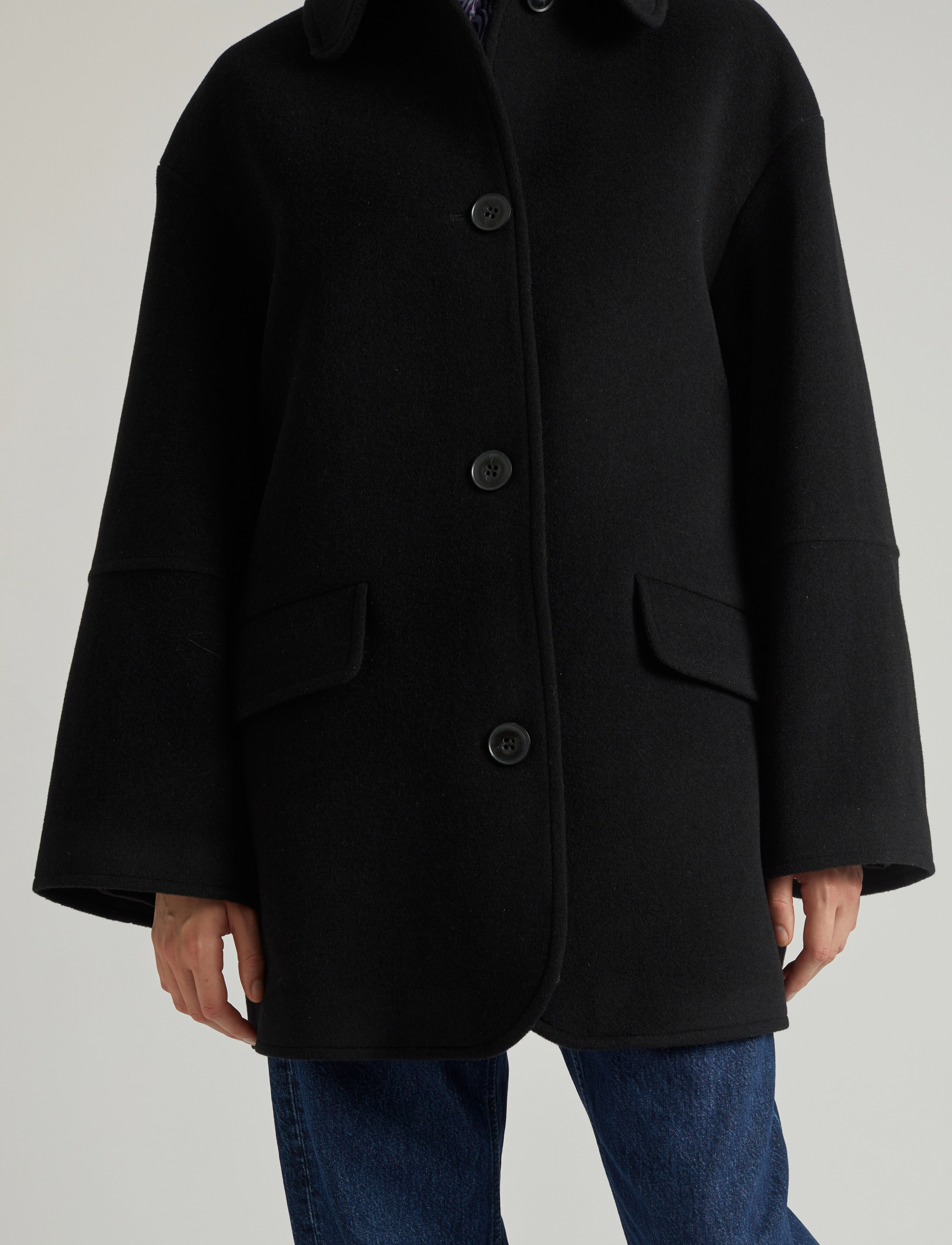 Outer fabric: 60% recycled wool, 25% polyester, 10% polyamide, 5% other fibers, inner fabric: 55% recycled polyester, 45% viscose