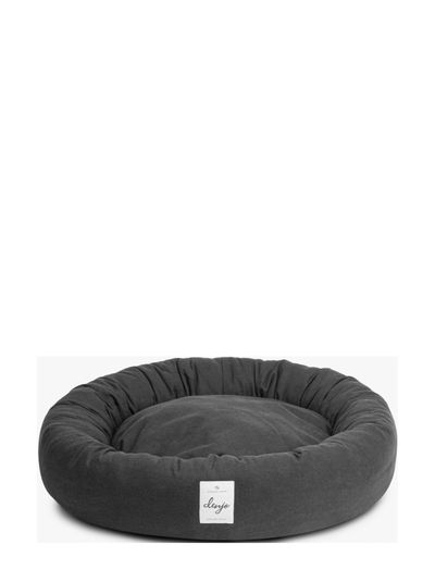 A classic donut dog bed with an upholstery of robust, dark grey cotton canvas fabric. It has soft, comfortable side bolsters and the filling consists of 100% recycled polyester.