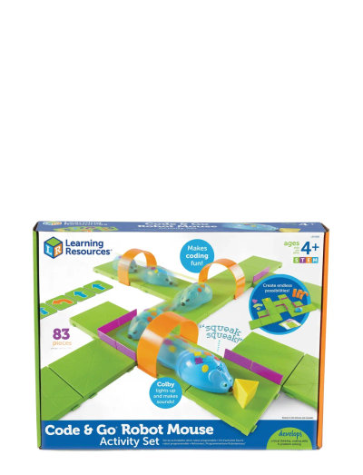 Detta färgglada set för tidig kodning är särskilt utformat för att engagera barn i naturvetenskap, teknik, ingenjörsvetenskap och matematik och gör det möjligt för elever i lågstadiet att lära sig mer om STEM! Unga elever kan utforska tidig kodning och programmeringskoncept med robotmusen "Colby". Barnen programmerar musen att utföra en sekvens av steg för att springa genom en mängd olika labyrintformationer för att få tag på osten.